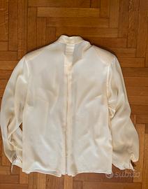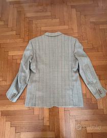 Blazer Laura Harper in cashmere morbidissimo principe di galles con spacchi centrali ultima moda. In regalo camicia in seta pura con particolare allacciatura al collo come da foto. La camicia è in abbinamento con la giacca. Manca l’etichetta perché essendo molto fastidiosa appena compro un capo la stacco subito. Garantisco pura seta. Indossato una sola vokta pari al nuovo. Taglia 48