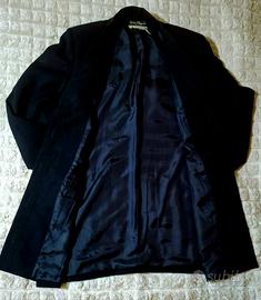 Blazer Salvatore Ferragamo originale, emblema di eleganza eccezionale e artoria italiana. Realizzato in lana pregiata color blu marino/blu notte, presenta una linia pulita e raffinata, con collo chelsea e chiusura frontale (bottoni), dettaglio classico che valorizza il design minimal.
