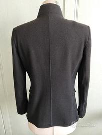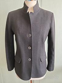 Blazer donna, in panno blu scuro e maglia a coste sul fianco e retro manica. Ottimamente rifinito. Modello sciancrato. Taglia 44. Misure: spalle 40- sotto ascelle 47- in vita 44 lunghezza 64- lunghezza manica 56 cm. IL capo ha etichetta Brunello Cucinelli. Condizioni ottime