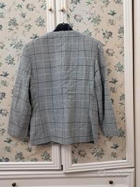 Blazer donna grigio a quadretti in lana vergine 100% in perfette condizioni per qualsiasi informazione scrivetemi larghezza spalle 42cm lunghezza totale 64cm Larghezza da ascella ad ascella e di 50cm Lunghezza manica 54cm
