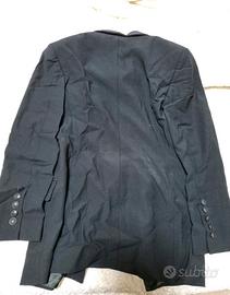 Blazer donna nero Antonio Fusco Made in Italy, Taglia 44. COMPOSIZIONE: Esterno 75% Lana Vergine 5% Lycra 20% Poliammide Fodera (Interno) 100% Viscosa MISURE: Lunghezza 73 cm Giro torace 42 cm DETTAGLI: Senza applicazioni, tinta unita colore nero, maniche lunghe, interno foderato, bottoni sulle maniche e sul davanti, tasche sul davanti, senza spacco sul retro, modello doppiopetto.
