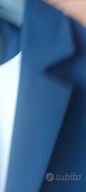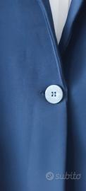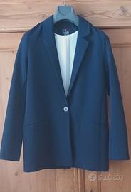 Vendo blazer donna di colore blu in jersy lievemente elasticizzato. Due tasche sul davanti e un unico bottone, piccolo spacco sulla schiena.