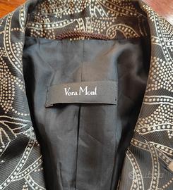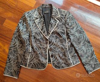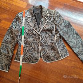 Elegante blazer Vera Mont con una fantasia unica. - Fantasia con foglie e pois. - Bordatura a contrasto. - Chiusura con bottoni. Spalline leggermente imbottite. Vestibilita' in linea con la taglia. Misure riportate nella foto.