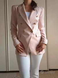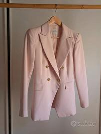 Aggiungi un tocco di raffinatezza al tuo guardaroba con questo splendido blazer rosa cipria firmato Rinascimento.