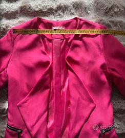 🌸 BLAZER CORTO FUCSIA – colore SPACCA, taglia M 🌸 Giacca blazer cropped fucsia vivace, il pezzo che mancava al tuo armadio! Modello super femminile e moderno, perfetto da autunno a primavera. ✨ Cosa lo rende speciale: • finte tasche con cerniera • Maniche lunghe con fondo arricciato (effetto romantico) • Spalle leggermente imbottite (spugna leggera, struttura perfetta) • Taglio corto in vita, molto sfiancato e flattering Misure reali (misurate steso): • Spalle: 37 cm • Lunghezza dietro: 55 cm • Lunghezza davanti: 64 cm → Perfetta taglia 40/M italiana (anche 38 comoda o 42 slim) Condizioni: ECCELLENTI 💯 nessun segno, colore ancora super brillante! Spedisco in 24h con pacco curato 📦 Prezzo basso perché svuoto armadio, AFFARE!
