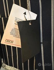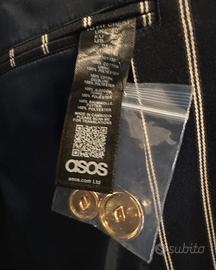Vendo blazer/giacca slim blu navy a righe con bottoni oro marca ASOS con etichetta presente. Taglia EU50 regolare. Unisex. Mai usato. Ottime condizioni.