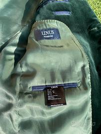 Elegante giacca blazer firmata Linus Hamburg, realizzata in pregiato velluto di puro cotone. Il colore è un verde bosco profondo, molto luminoso grazie alla qualità del tessuto, ideale per un look distintivo che unisce classico e moderno.