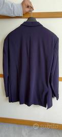 Blazer di taglio classico a tre bottoni. Di ottima fattura, in pura lana vergine tessuto Marzotto. Indossato, ma in ottime condizioni, di colore blu.