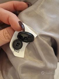 Chiusura con bottone singolo e bottoni di scorta nella fodera.