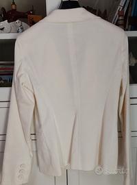 Blazer mai usato, acquisto sbagliato. Taglia 42. Cotone sostenuto, interno foderato, spalline leggermente imbottite, color panna. Spalle misura 38 cm. Lunghezza 58 cm. Bello bello.