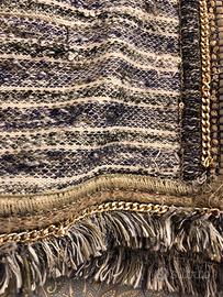 Blazer leggero in cotone Patrizia Pepe modello Chanel, lavorazione tweed con profili in catena dorata. Chiusura con automatici. Taglia 42 ( italiana).