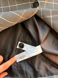 🧶 Materiale: tessuto effetto lana con fantasia a quadri bianco/nero/grigio, completamente foderato all’interno (Stradivarius)