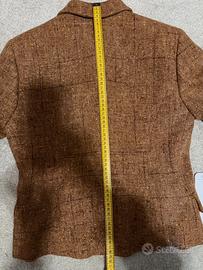 Blazer di fattura raffinata della ditta Margon Italy di Magenta (MI) Taglia 42 - 100% Pura Lana Vergine così morbida e leggera da sembrare cachemire Allaccia con 5 bottoni, 3 bottoni sui polsi e spacchetto sul retro. Misure prese da dietro, stesa: da spalla a spalla 39 cm da ascella ad ascella 44 cm lunghezza dietro 59 cm