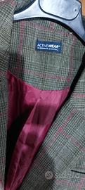 blazer scozzese in misto lana , nei colori del verdone , terra e righe fucsia.
