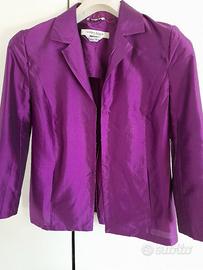 Blazer in pura seta Marina Rinaldi,,viola,sfoderata,manica con fodera,2 tasche invisibili,abbottonatura invisibile,tg L,misura spalla spalla 45 ascella ascella 48 lunghezza 64, Condizioni ottime usata per una cerimonia.