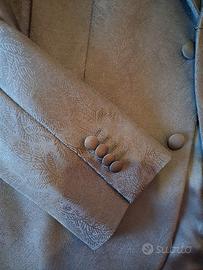 Articolo mai indossato. Particolarità del vestito è la trama disegnata su stile floreale. Tg 52. Ideale per persone alte da 180 cm (circa) con corporatura media. Giacca per completo della Collezione Giorgio Armani Soho Suit.