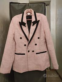Blazer Tweed rosa con dettagli a contrasto nero