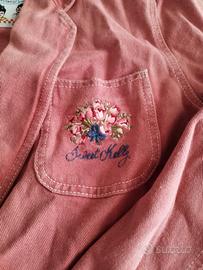 Presenta tre tasche applicate una delle quali sul petto con ricamo floreale e la scritta "Sweet Kelly"