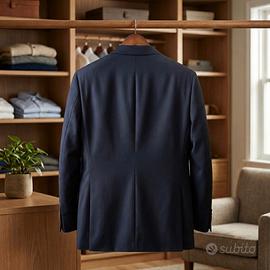Taglia 46 italiana, blu navy, tessuto strutturato 62% acetato 38% cupro, medio-leggero ideale mezza stagione 🎯🔵