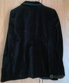 Modello smoking. Taglia L. Rifiniture in raso Bottone riattaccato. Spacco dietro. MISURE: *Spalle 41cm. *Petto 50cm. *Lunghezza 68cm. *Lunghezza maniche 65cm.