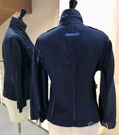 Vendo bleazer Trussardi Jeans tg 44, 100% lino, col.blu, sfoderato con cuciture bordate con sbieco di raso, tasche a toppa, Lunghezza sulla meta’ dietro da scollo cm55, larghezza spalle cm41, lunghezza maniche da spalla cm55 (con possibilita’ di risvoltare il fondo maniche di 5cm), circonferenza torace sul seno cm100, circonferenza vita cm84(su di cm3/4 da ultimo bottone), circonferenza fondo giacca cm96. Ulteriori dettagli se richiesti.