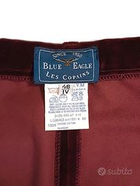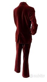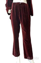 Tailleur donna Blue Eagle, made in Italy, vintage ’90, composto da giacca e pantaloni sartoriali in velluto color porpora, lucentezza morbida e tocco setoso. 60% acetato, 40% cupro.