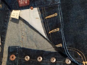 I blue jeans vintage da donna in cotone denim il modello di tendenza a gamba dritta 5 tasche le 2 posteriori con zip chiusura a bottoncini in metallo taglia 41 lunghezza totale 109 cm. 74 giro fianchi 96 cm. giro caviglia 36 cm. bjd 029. Nuovo original2 ed autentico. Seven Bell Roy Rogers - Made in U.S.A.
