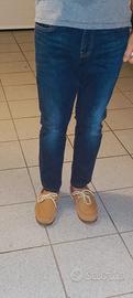 Buongiorno, vendo i jeans in foto, discrete condizioni, orlo rifatto perché accorciati (mia altezza 168 cm), ed eventualmente da rifare perché lievemente scucito.