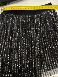 Bellissima gonna nera con paillettes con sottogonna marca blue kids usata solo per l’ultimo dell’anno. La gonna ha l’elastico in vita in velluto, per una comoda vestibilitá, circa tg 40/42.( vedi foto allegate)