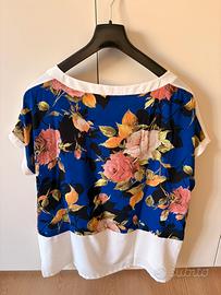 Blusa con stampa floreale vivace con dettagli bianchi.