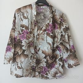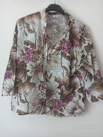 Blusa a maniche corte a fiori marrone e fucsia, taglia L