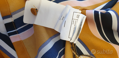 Taglia S Blusa a righe color senape, blu, bianco e rosa Chiusura a portafoglio sul davanti Usata 1 volta, come nuova