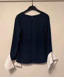 Blusa Armani Exchange Blu con polsini bianchi Chiusura lampo sul retro Taglia S