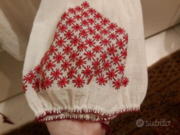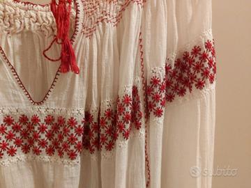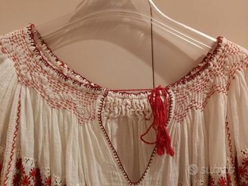 Blusa interamente ricamata a mano, anni '70, in garza di cotone, taglia unica, in perfette condizioni
