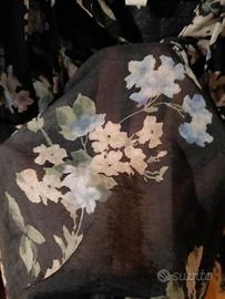 Blusa H&M blu notte, semi trasparente, scollo con volant e doppi laccetti. C'è scritto Tg. XS , ma calza comoda quindi va bene anche ad una tg. S. Misura sotto ascelle cm. 45. lunghezza maniche cm 62. Indossata poche volte, perfetta.