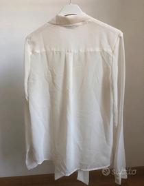 Elegante blusa color panna con un grazioso fiocco sul davanti. Il tessuto leggero la rende perfetta per ogni occasione