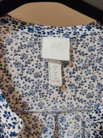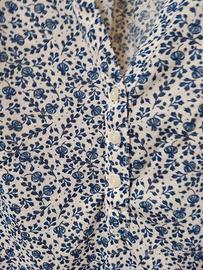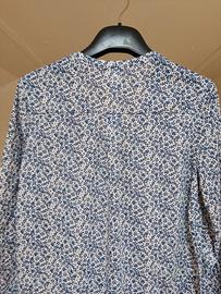 Blusa leggera, motivo floreale blu su sfondo bianco, manica 3/4. Buona vestibilità. Misure da spalla a spalla cm 35, lunghezza cm 57.