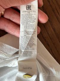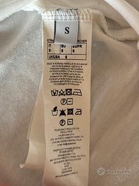 Taglia S Composizione: 95% viscosa e 5% elastan Da sostituire il primo bottone in alto, attaccato all’etichetta c’è quello di riserva.