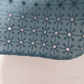 Camicia blusa Emme Marella pizzo San Gallo color ottanio. Elastico al collo e alle maniche. Taglia 46. Lunga cm 56, distanza da ascella ad ascella cm 56