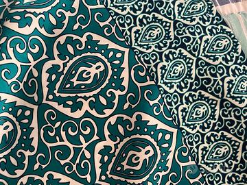 Splendida camicia manica lunga, marchio Jones New York, elegante e raffinata, veste bene sia una 44 che una 46, presenta collo ampio, laccetti di chiusura per adattare all'ampiezza del collo o decolté, in poliestere al 96 % + 4% elasten. Tessuto e stampa di grande effetto. Capo adatto a tutte le età.