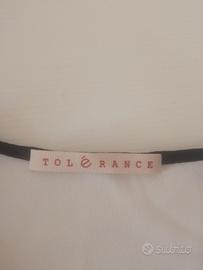 Bellissima blusa del marchio TOLORANCE, in bianco con dettagli verdi.
