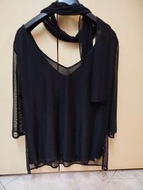 Blusa con Sciarpa Coordinata Caratteristiche: - Comoda; - Foderata; - Maniche a ¾ Velate; - Scacchetti Laterali; - Scollo a V sia Avanti che Dietro; - Corallini sul Davanti e sulle Maniche. Dimensioni: - Lunghezza 67 cm; - Larghezza Spalle 40 cm; - Circonferenza Torace 98 cm; - Lunghezza Manica Esterna 44 cm; - Lunghezza Manica Interna 30 cm; - Foulard 140 cm x 22 cm. Dettagli: - Materiale 95% Poliestere 5% Elastan; - Colore Nero; - Taglia M; - Genere: Donna. In Buone Condizioni, Unico Difetto Manca qualche Corallino e esce qualche Filo Per Qualsiasi Dubbio o Informazione non Esitate a Contattarmi! #fashion #outfit #style #shirt #moda #shopping #shoppingonline #clothes #lowcost #colors #black #nero #maglia #casacca #blusa #woman #womanstyle #corallini #fodera #foulard #sciarpa