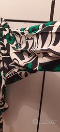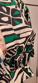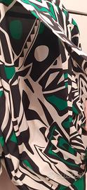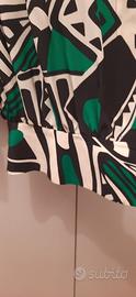 splendida blusa originale in seta pura, taglia 44, verde smeraldo bianca e nera, plissé sul davanti e sulle maniche allargate, fascia in cintura con fiocco in passante, bottonatura nascosta, gruppi aggiunto sulla schiena. modello molto elegante . portata 2 sole volte in perfette condizioni. spalle 46 lunghezza 60