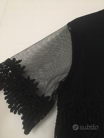 Blusa elegante Twin Set in tulle e pizzo macramé. Apertura completa con automatici interni. Nuova con cartellino