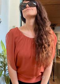 Blusa estiva smanicata donna color ruggine