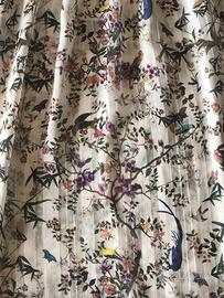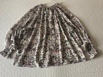 Blusa dalla linea ampia in tessuto semitrasparente. Maniche lunghe a palloncino modello raglan. Bordo inferiore arrotondato, chiusura scollo con laccetti.