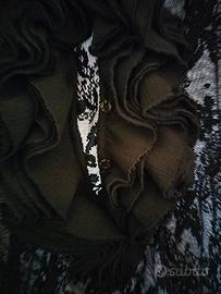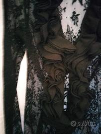 blusa in pizzo floreale trasparente con maniche lunghe .#profondo scollo a v# con grandi volant a cascata# chiusura con bottoncini nascosti #
