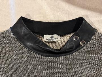 Collo in simil pelle con bottoni decoro, polsini abbinati.