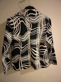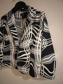 Elegante blusa firmata ZZ Le Femme, realizzata in 96% cotone e 4% elastane per un comfort ottimale. Con maniche a 3/4 e una fantasia bianca e nera, è un capo versatile e chic, perfetto per completare un look raffinato. Taglia M, ideale per chi cerca un abbigliamento comodo ma elegante.