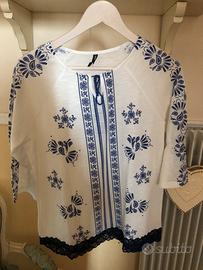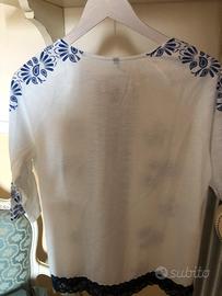 Come nuova, usata qualche volta. Tg s, manica tre/quarti. Colore: bianca e bluette.